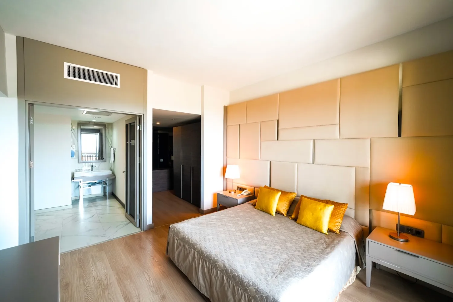 Es verfügt über eine elegante Dekoration und fällt durch sein modernes und stilvolles Design auf. Es umfasst normalerweise ein separates Wohnzimmer, ein Schlafzimmer und ein eigenes Badezimmer. Diese Anordnung bietet unseren Gästen einen geräumigen Wohnraum und sorgt für einen komfortablen Aufenthalt.
