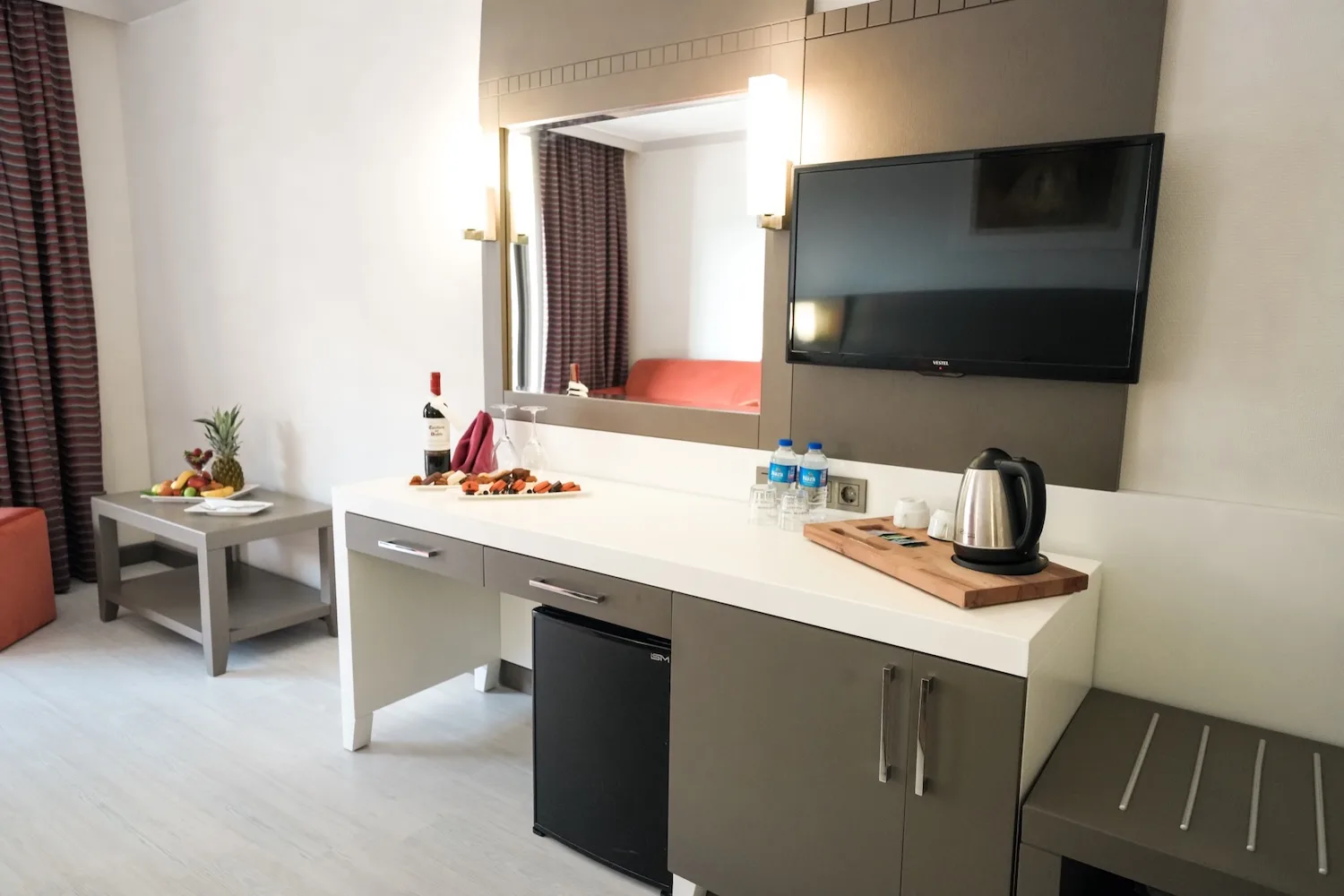 • Minibar (am Eingang aufgefüllt und täglich mit Wasser aufgefüllt)